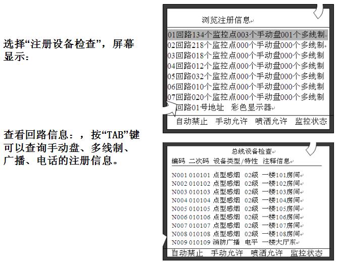 按“TAB”鍵,將會顯示該回路注冊到的手動盤的定義信息、直接控制盤信息、廣播電話信息